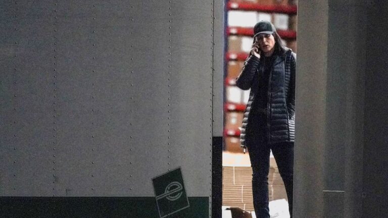 Tulsi Gabbard inside a vehicle loaded with boxes outside the Fulton County Election Hub and Operation Center after the Federal Bureau of Investigation (FBI) executed a search warrant there in relation to the 2020 election in Union City, Georgia, January…
