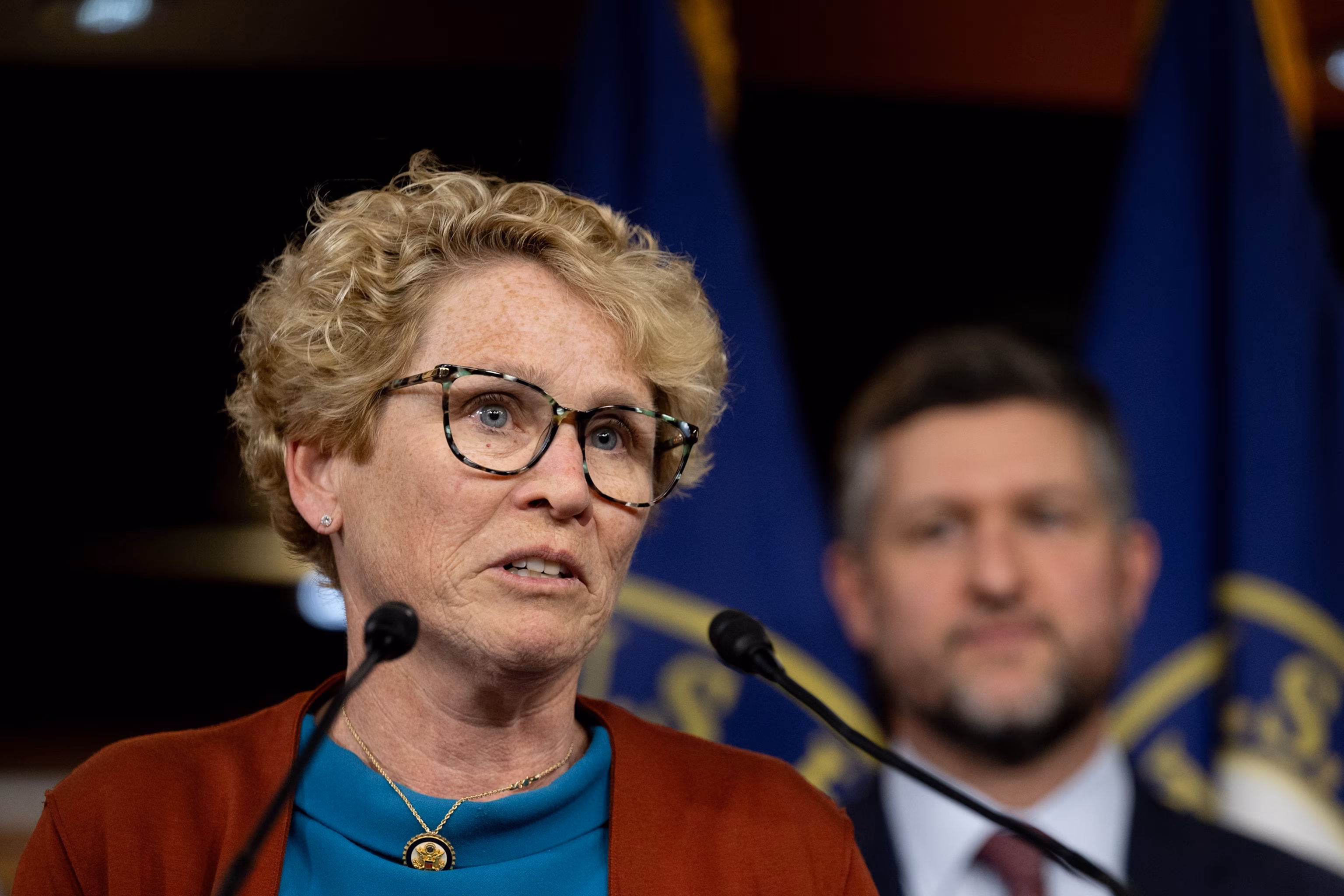 Rep. Chrissy Houlahan speaks during a news conference at the US Capitol in Washington, March 25, 2025. Daniel Heuer/Bloomberg via Getty Images