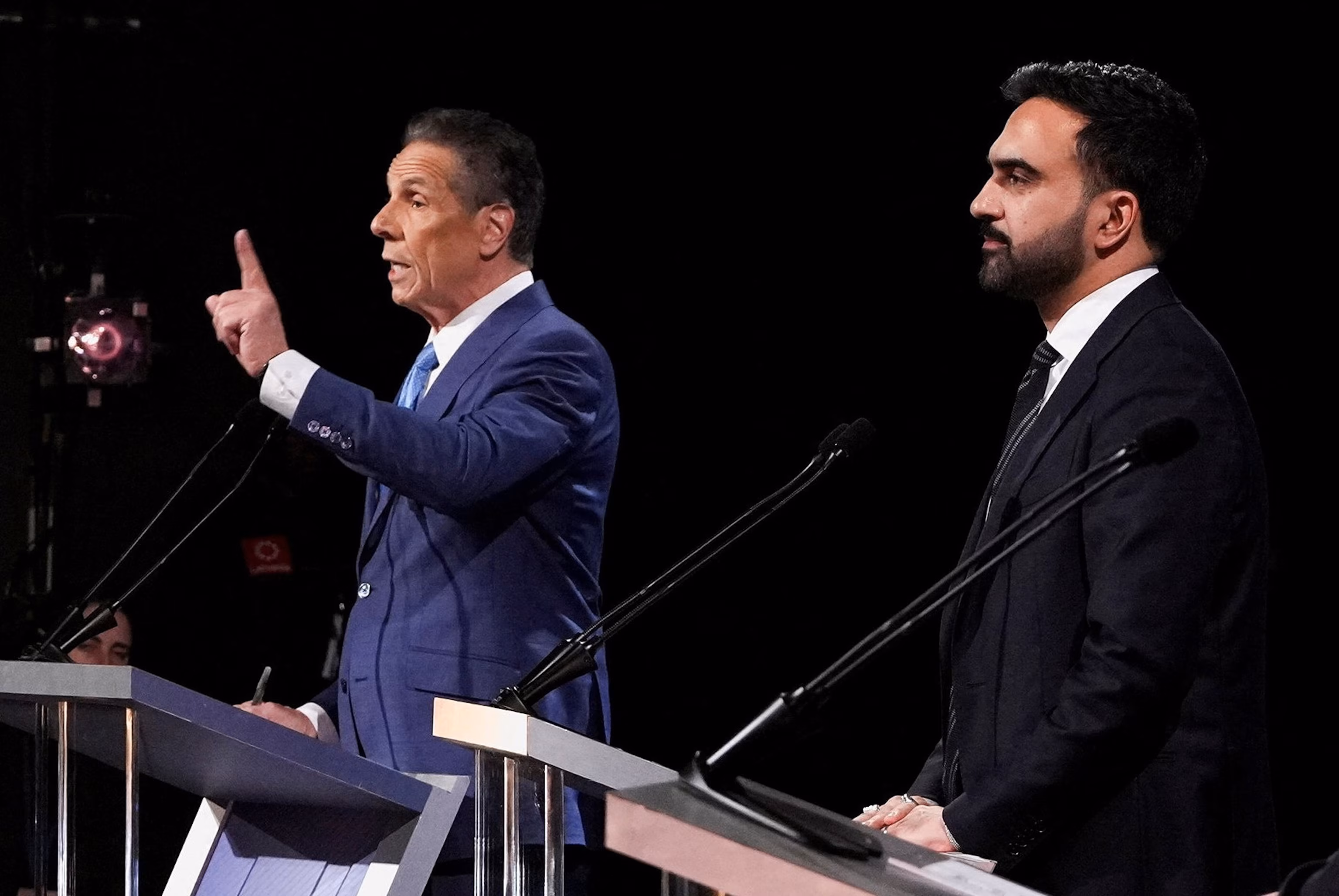 Independent candidate, former New York Governor Andrew Cuomo and Democratic candidate, Assemblyman Zohran Mamdani participate in a second New York City mayoral debate in New York City, October 22, 2025.Hiroko Masuike/Pool via Reuters