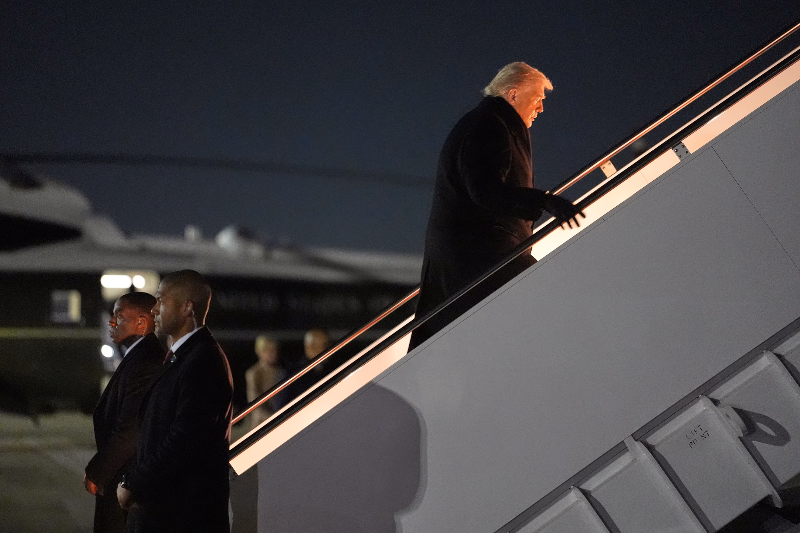 President Donald Trump boards Air Force One for a trip to attend the World Economic Form in Davos, Tuesday, Jan. 20, 2026, at Joint Base Andrews, Md.Evan Vucci/AP