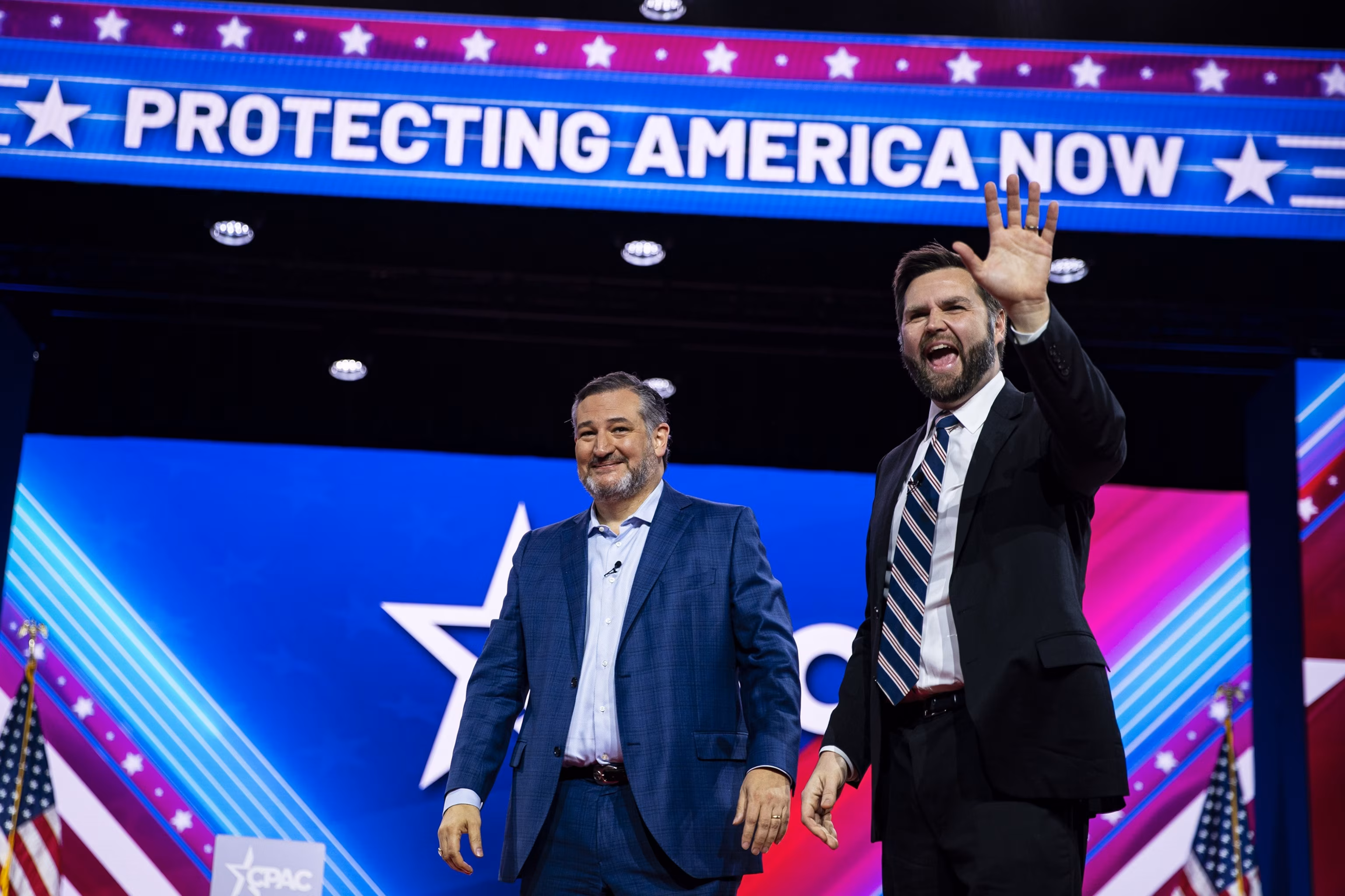 Senator Ted Cruz and Senator JD Vance during the Conservative Political Action Conference (CPAC) in National Harbor, Md., March 2, 2023. Al Drago/Bloomberg via Getty Images