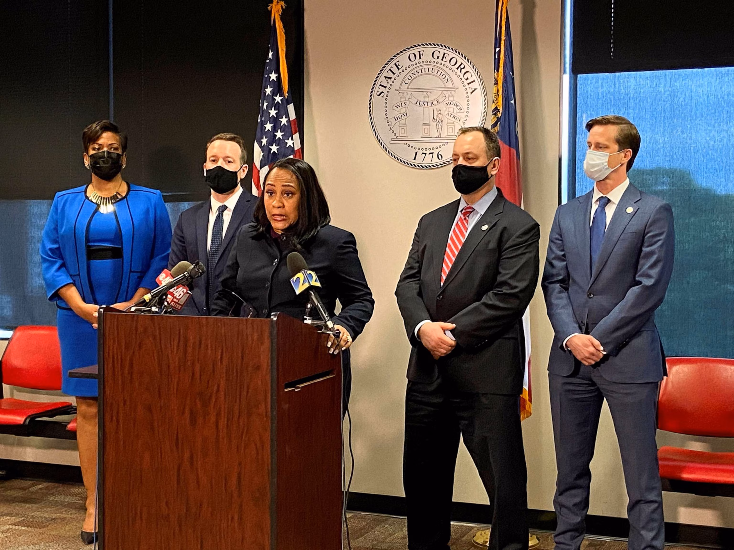 Fulton County District Attorney Fani Willis speaks at a news conference in Atlanta, May 11, 2021.Linda So/Reuters, FILE
