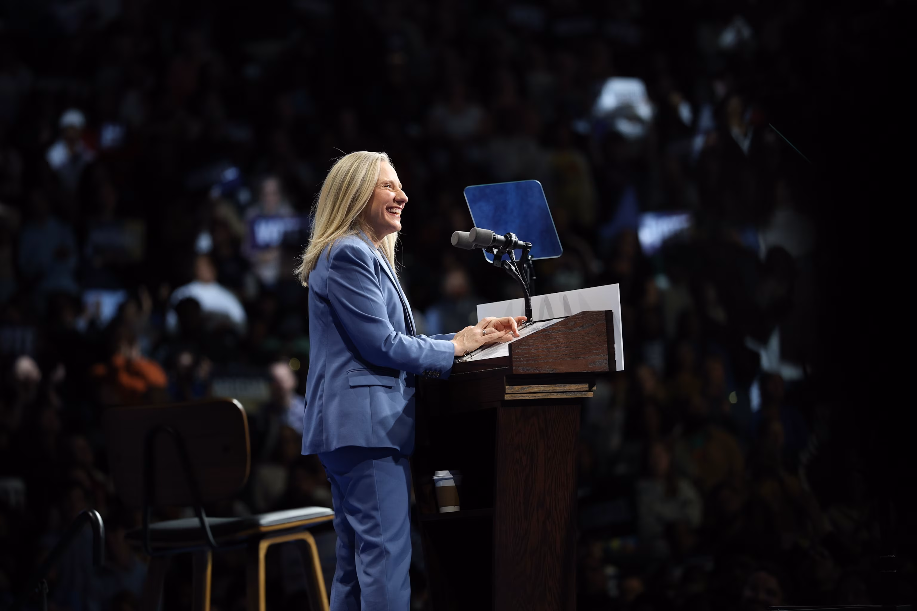 NORFOLK, VIRGINIA – NOVEMBER 01: Virginia Democratic gubernatorial candidate, former Rep. Abigail Spanberger speaks during a campaign rally featuring former U.S. President Barack Obama at Chartway Arena on November 01, 2025 in Norfolk, Virginia. Spanberger will face off against Republican candidate Winsome Earle-Sears in the Commonwealth of Virginiaâs off-year election for governor and other statewide offices on November 4.Win Mcnamee/Getty Images