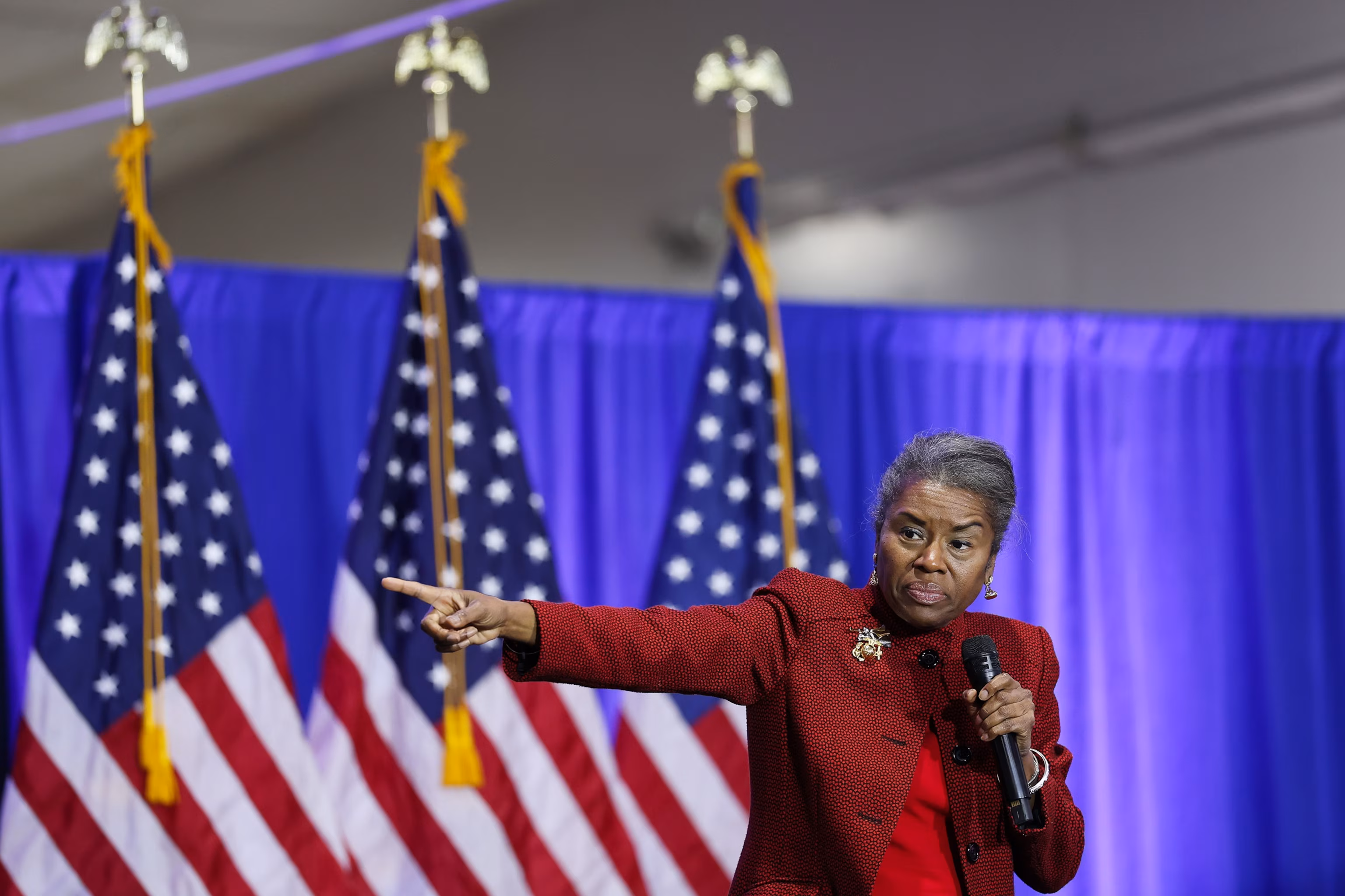 HARRISONBURG, VIRGINIA – OCTOBER 30: Virginia Republican gubernatorial candidate Winsome Earle-Sears speaks during a campaign event at the Rockingham County Fair on October 30, 2025 in Harrisonburg, Virginia. Earle-Sears’ campaign continues to travel across the state of Virginia ahead of the Commonwealthâs off-year election for governor on November 4.Anna Moneymaker/Getty Images