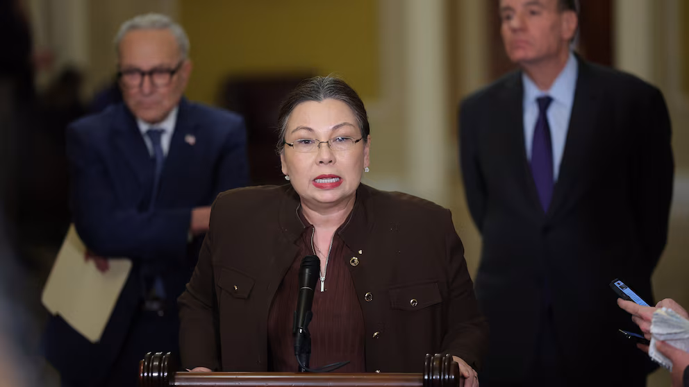 Sen. Tammy Duckworth speaks during a news conference following a weekly Democratic policy luncheon at the Capitol, Jan. 6, 2026.Kevin Dietsch/Getty Images