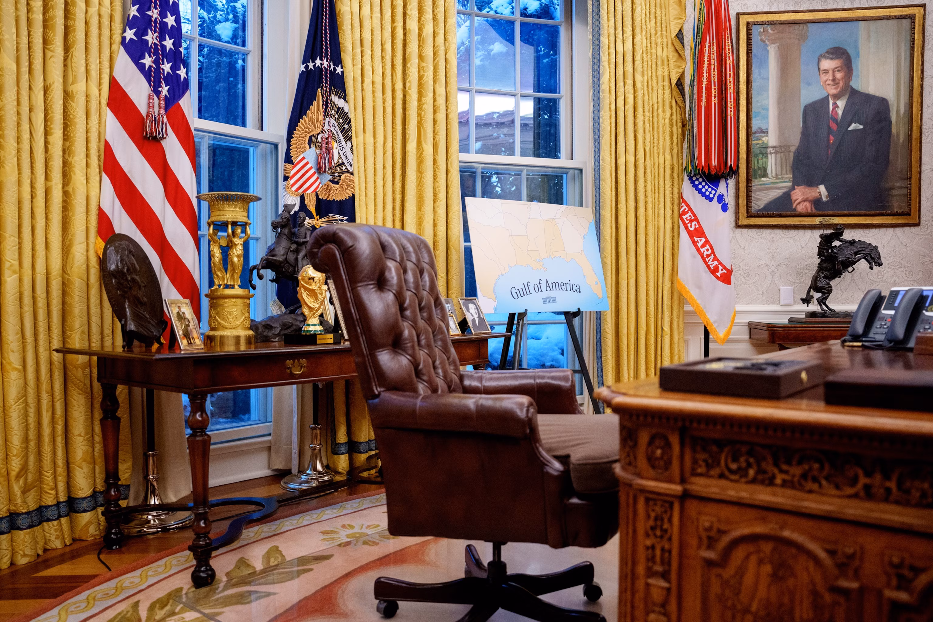 The Resolute Desk during an inauguration ceremony for Tulsi Gabbard as Director of National Intelligence in the Oval Office at the White House on February 12, 2025, in Washington, DC.Andrew Harnik/Getty Images
