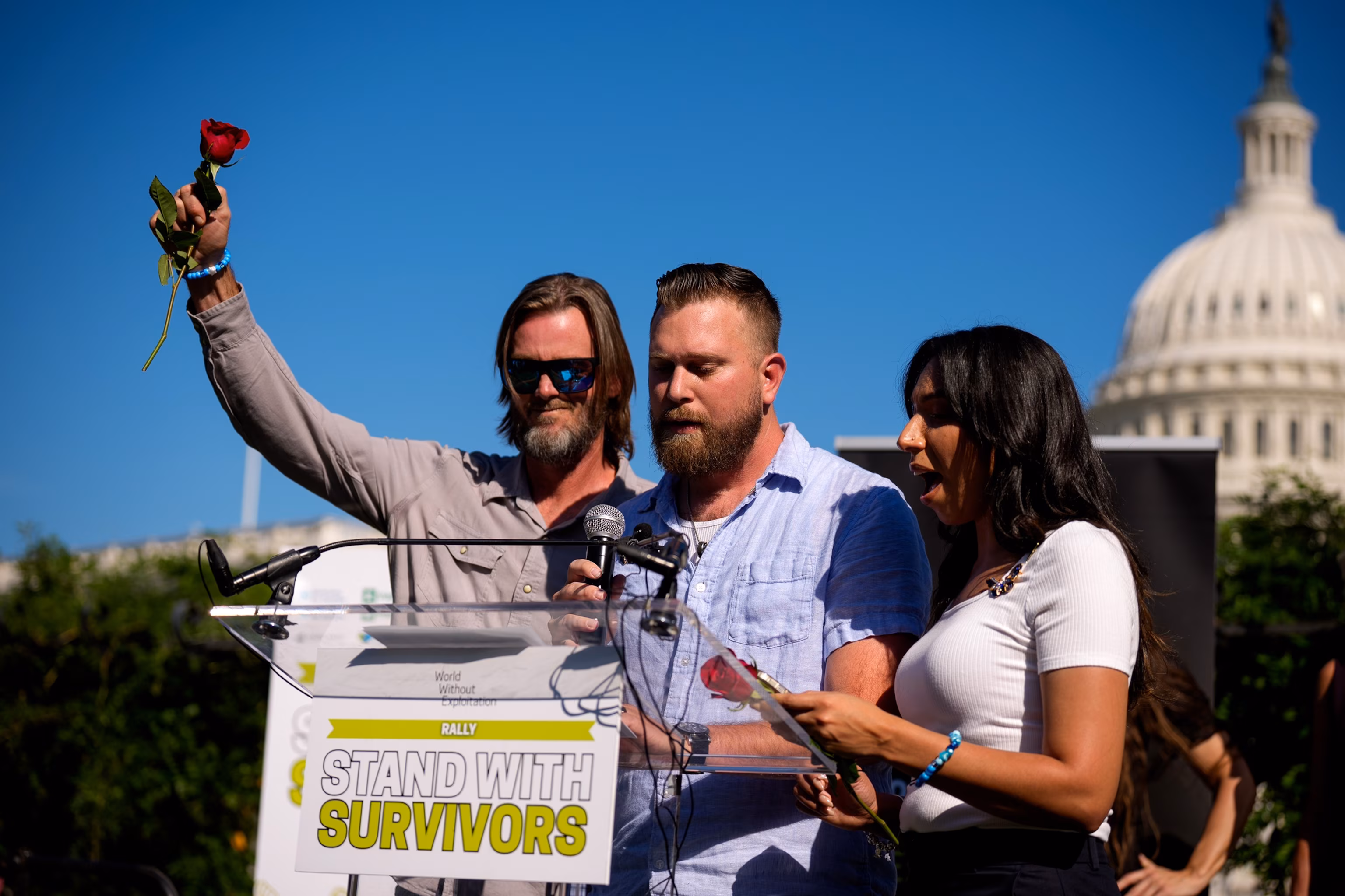 Relatives of Virginia Giuffre express their support during a demonstration for the victims of disgraced financier and sex trafficker Jeffrey Epstein outside the U.S. Capitol, on Sept. 3, 2025, in Washington, D.C.Andrew Harnik/Getty Images, FILE