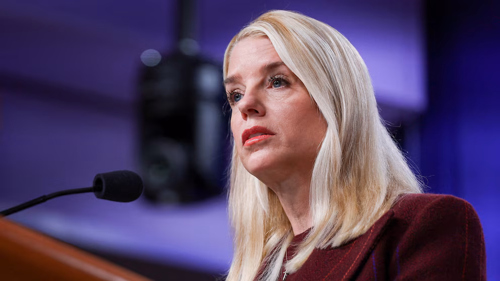 1:50Attorney General Pam Bondi addresses journalists during a press briefing at the Justice Department, Nov. 19, 2025, in Washington.Tom Brenner/Reuters