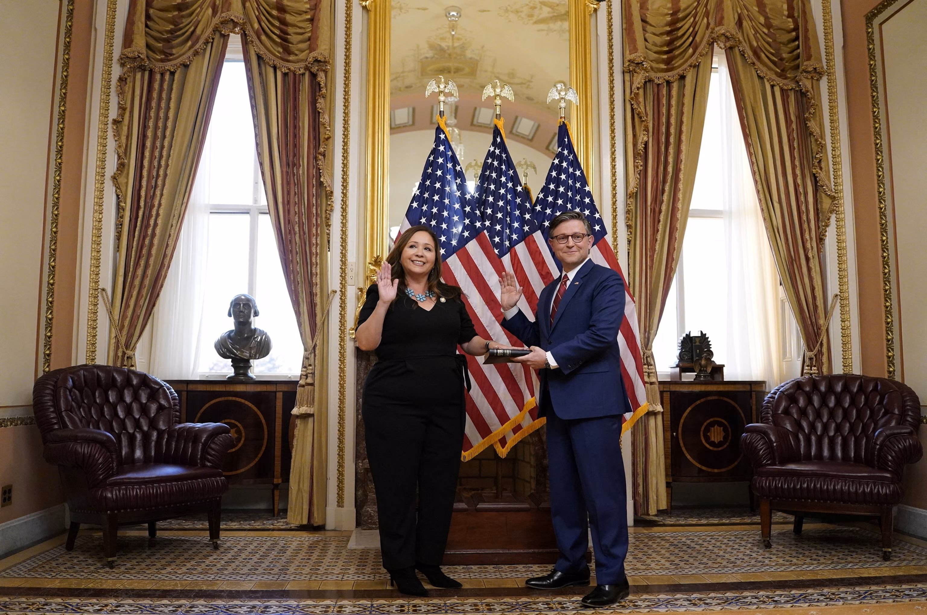 Rep. Adelita Grijalva is ceremonially sworn in by House Speaker Mike Johnson at the Capitol, Nov. 12, 2025.Elizabeth Frantz/Reuters