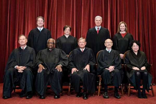 The Supreme Court justices pose for a group photograph at the Supreme Court in Washington, D.C, April 23, 2021.Erin Schaff, Pool via Getty Images, FILE