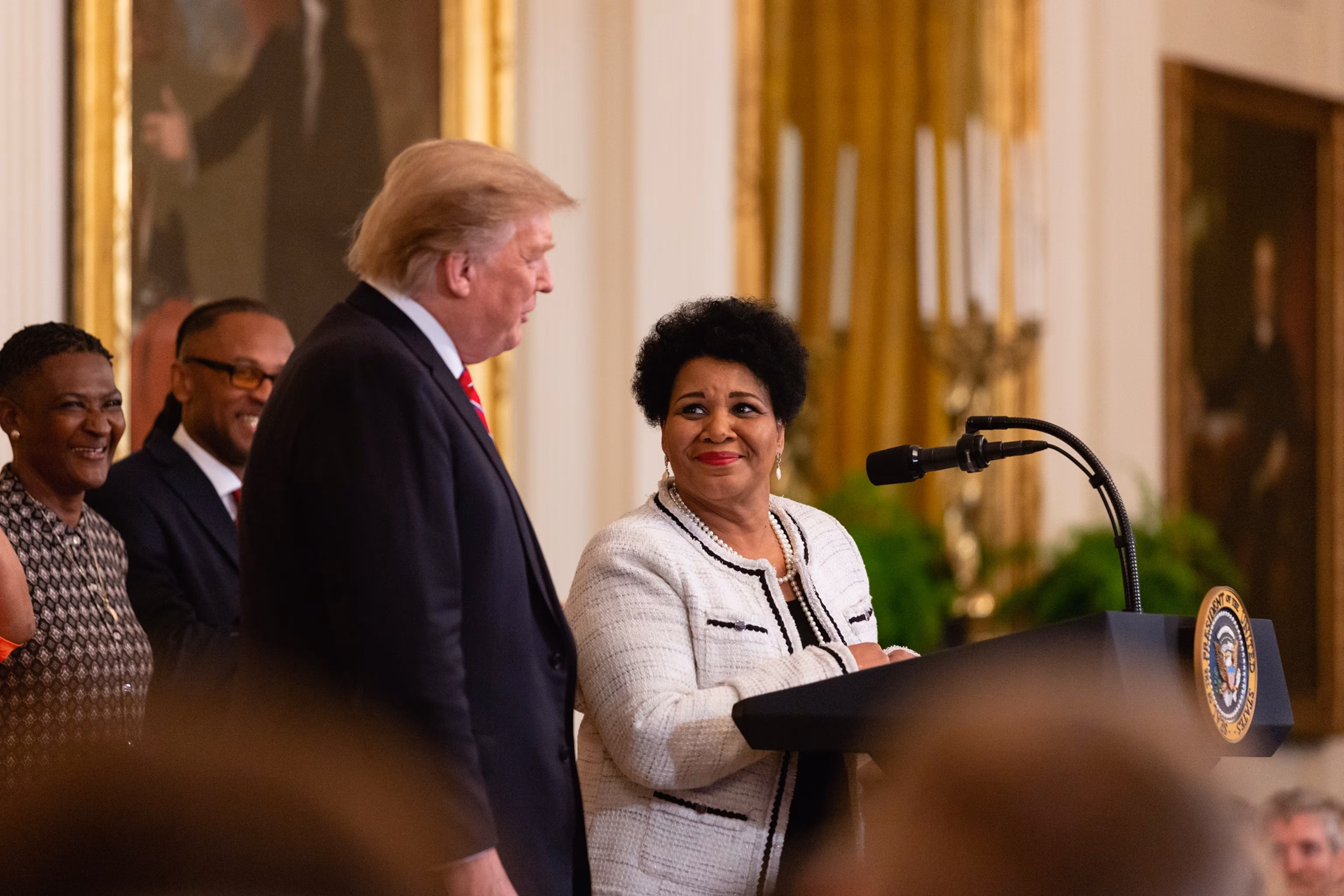 Alice Marie Johnson, whose sentence was commuted by President Donald Trump, delivers a presentation at the 2019 White House Prison Reform Summit and First Step Act gala. Hosted within the East Room of the White House, April 1, 2019.Cheriss May/NurPhoto via Getty Images