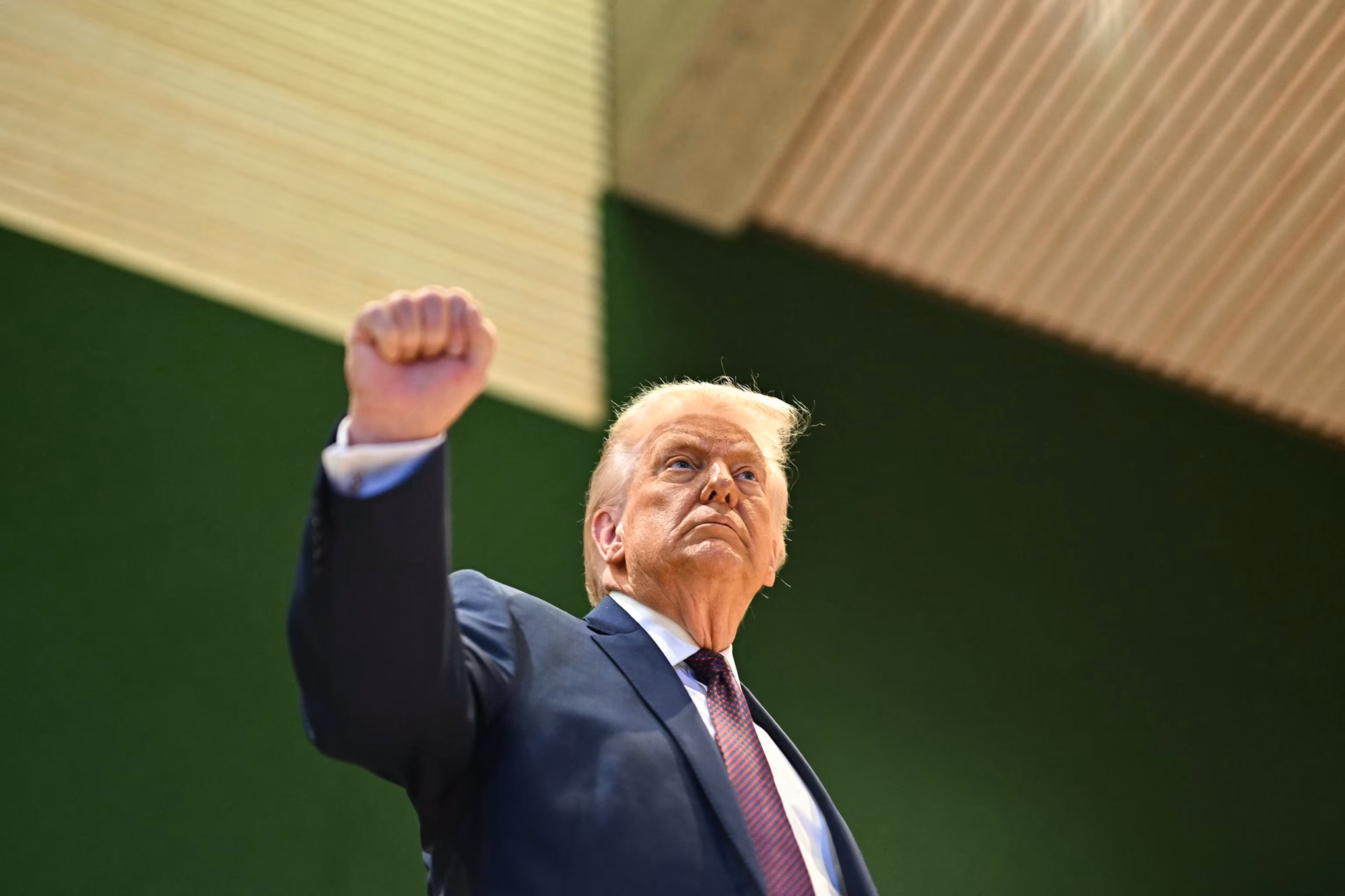 President Donald Trump raises his fist after the “Board of Peace” meeting during the World Economic Forum annual meeting in Davos, January 22, 2026.Fabrice Coffrini/AFP via Getty Images