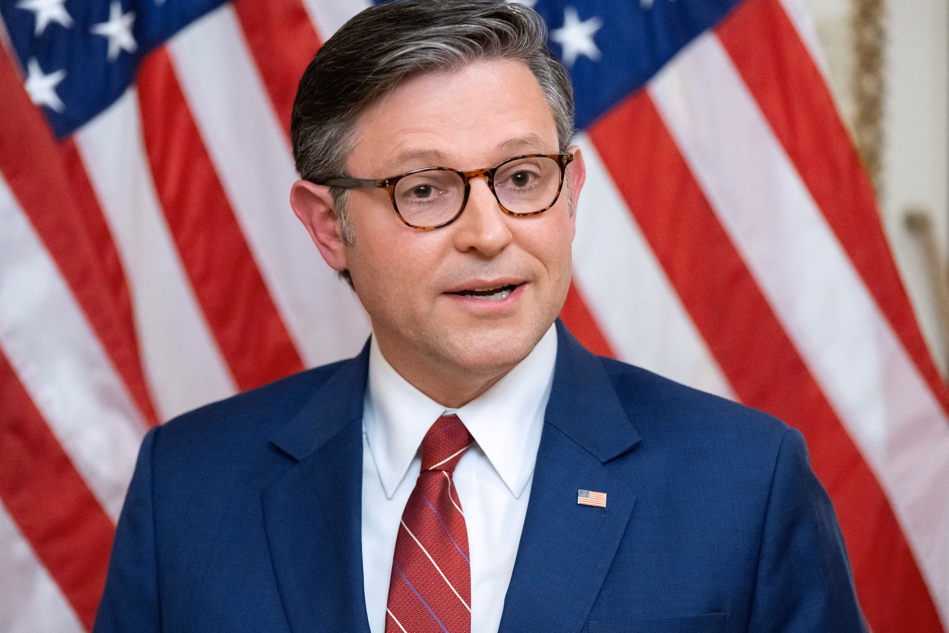 Speaker of the House Mike Johnson speaks to the press during a ceremonial swearing-in of Representative Adelita Grijalva at the Capitol, Nov. 12, 2025.Saul Loeb/AFP via Getty Images