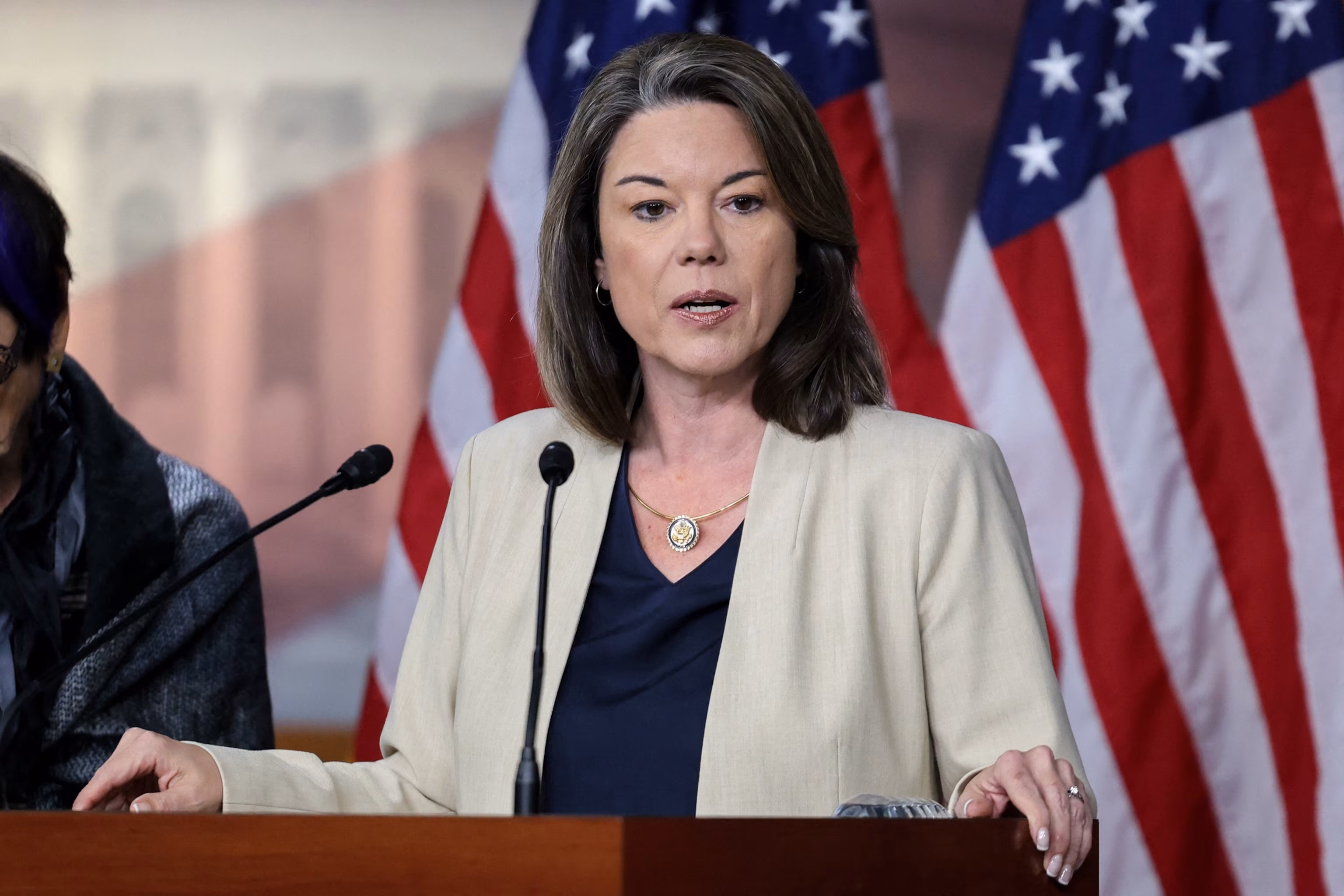 Rep. Brittany Pettersen speaks during the the Mother’s Day Press Conference calling for action on Care and Reproductive rights, May 8, 2024, in Washington, D.C.Jemal Countess/Getty Images
