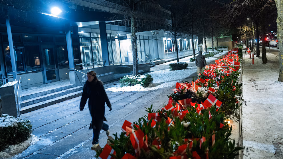 2:34A growing number of Danish flags are placed in front of the US Embassy, January 28, 2026 in Copenhagen, Denmark. Martin Sylvest Andersen/Getty Images