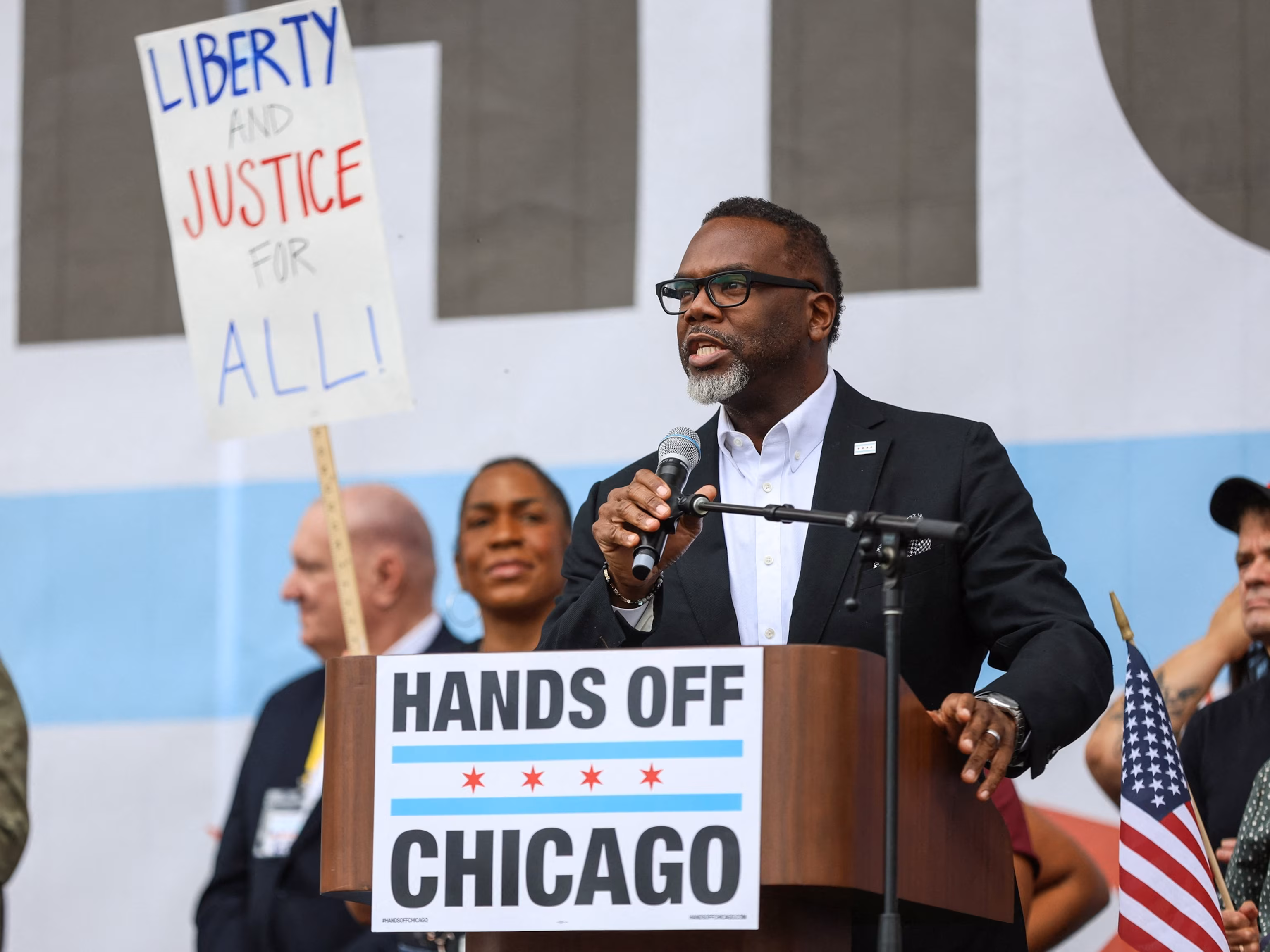 Mayor of Chicago Brandon Johnson speaks during a “No Kings” protest against U.S. President Donald Trump’s policies, in Chicago, Oct. 18, 2025.Jim Vondruska/Reuters