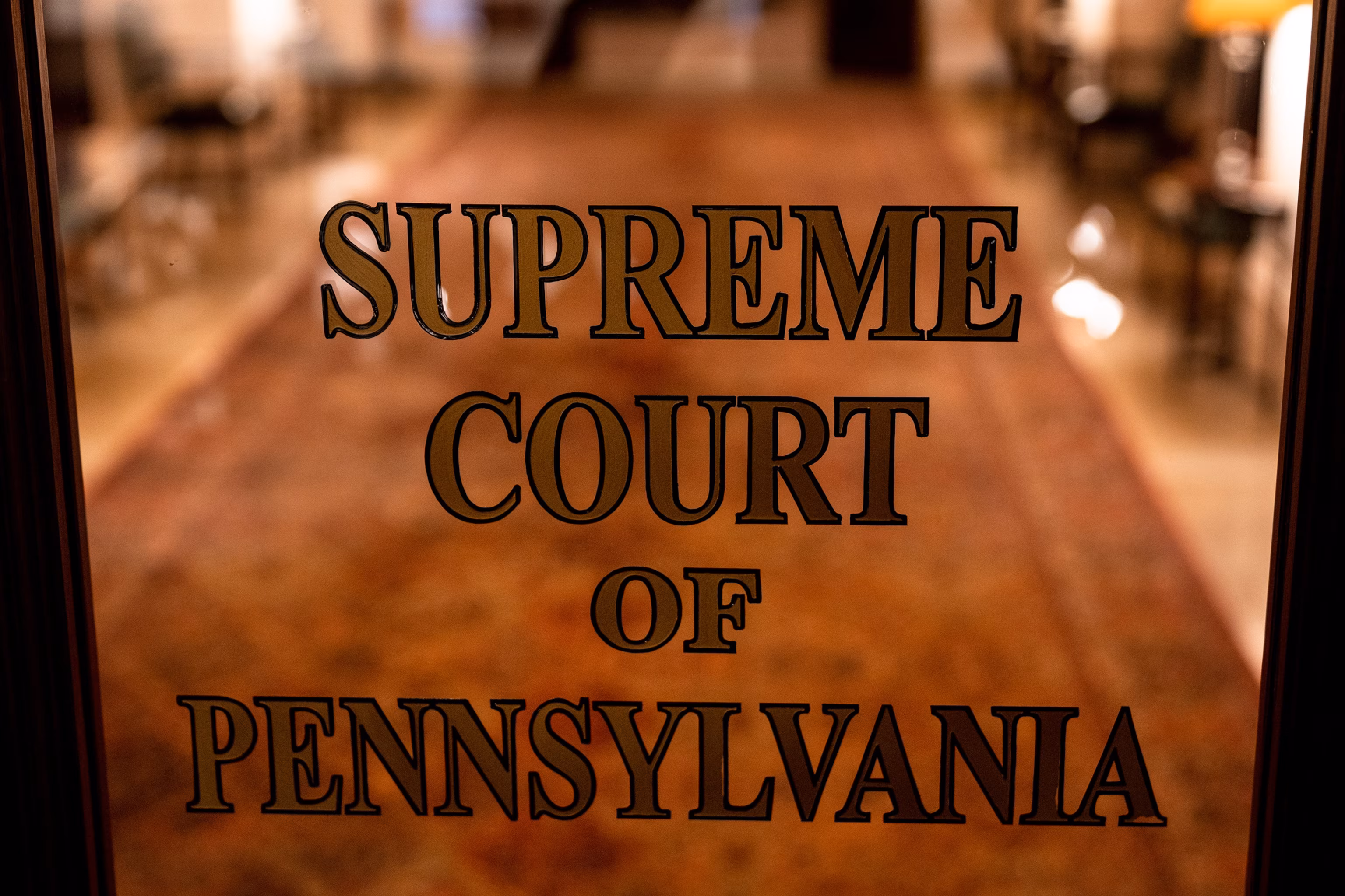 FILE – A sign affixed to a door at the Commonwealth of Pennsylvania's High Court is seen at the Capitol building in Harrisburg, Pennsylvania, Feb. 21, 2023. (AP Photo/Matt Rourke, File)Matt Rourke/AP
