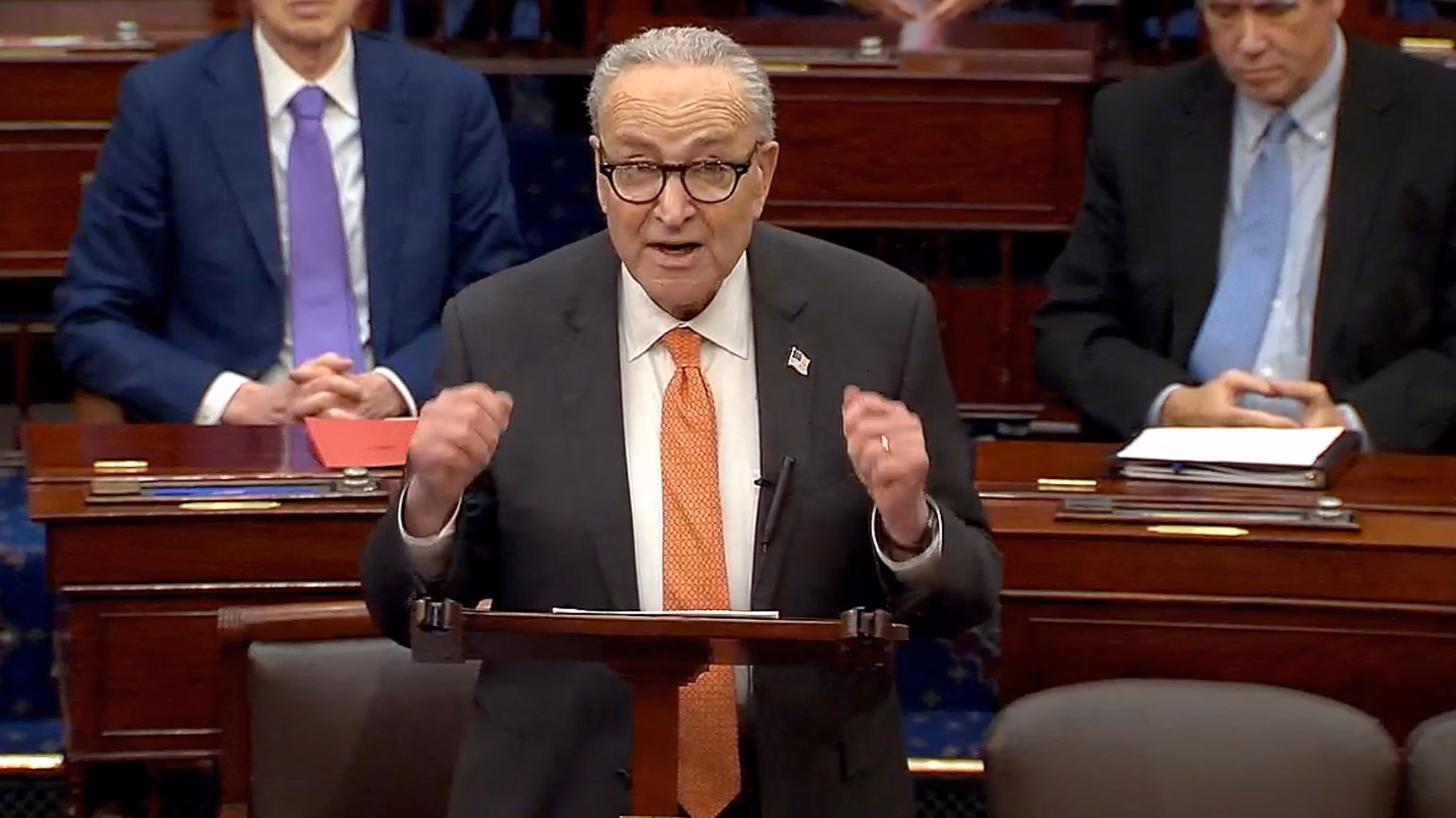 Senate Minority Leader Chuck Schumer speaks on the floor of the Senate in Washington, Nov. 7, 2025.Senate TV