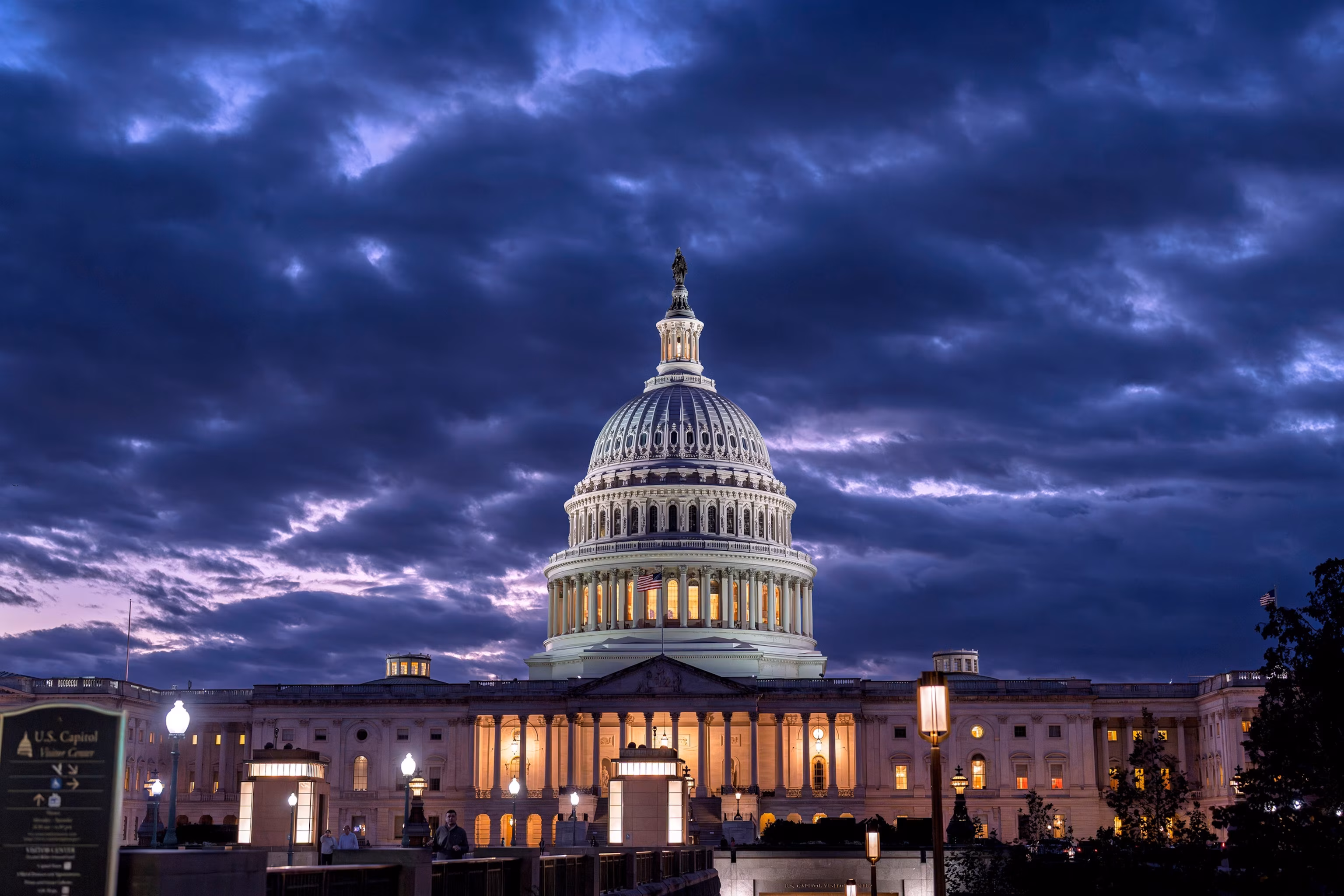 The Capitol is seen at nightfall on day 22 of a government shutdown in Washington, Oct. 22, 2025.J. Scott Applewhite/AP