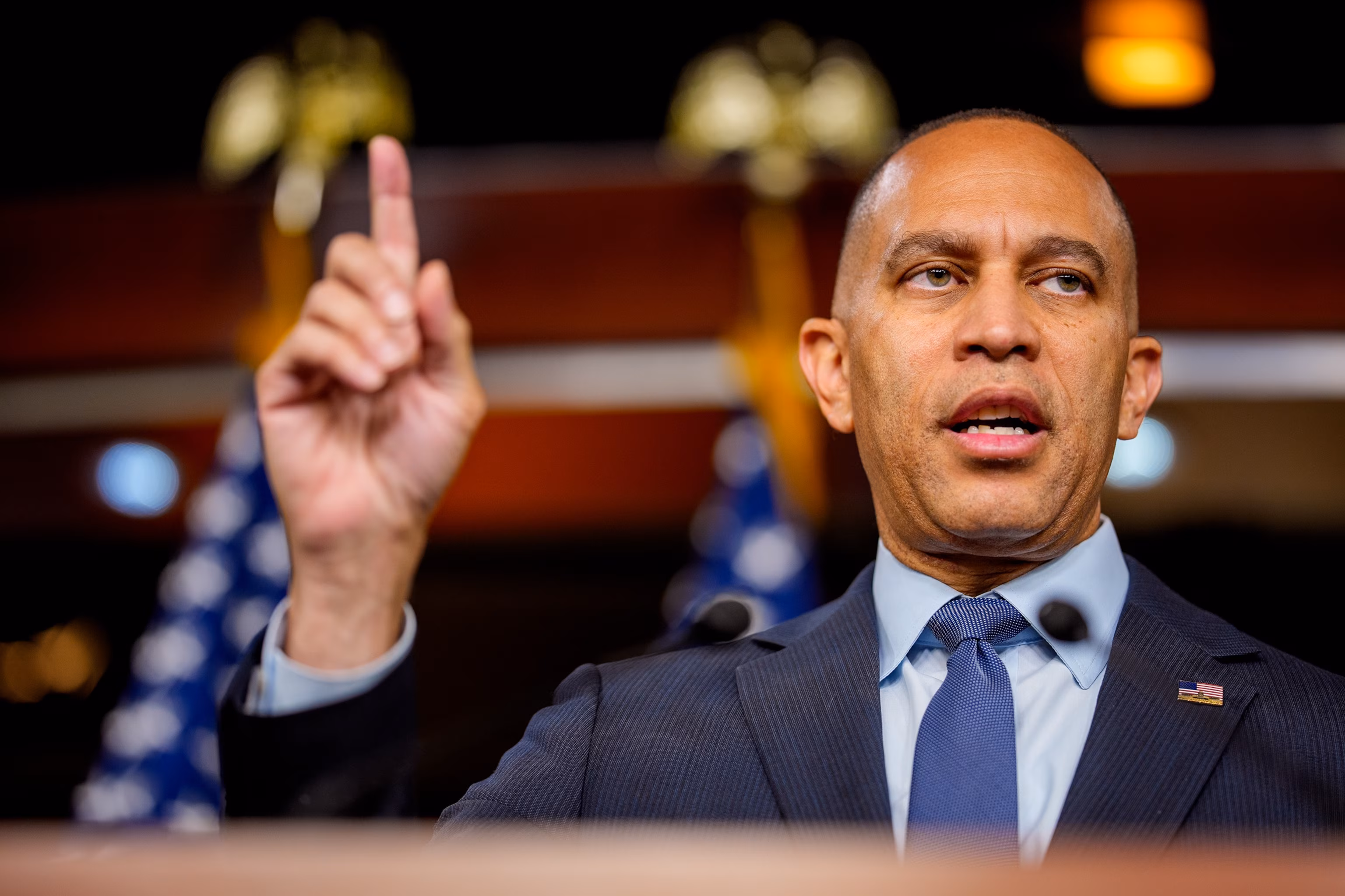 House Minority Leader Hakeem Jeffires speaks at a news conference on Capitol Hill, October 22, 2025 in Washington.Andrew Harnik/Getty Images