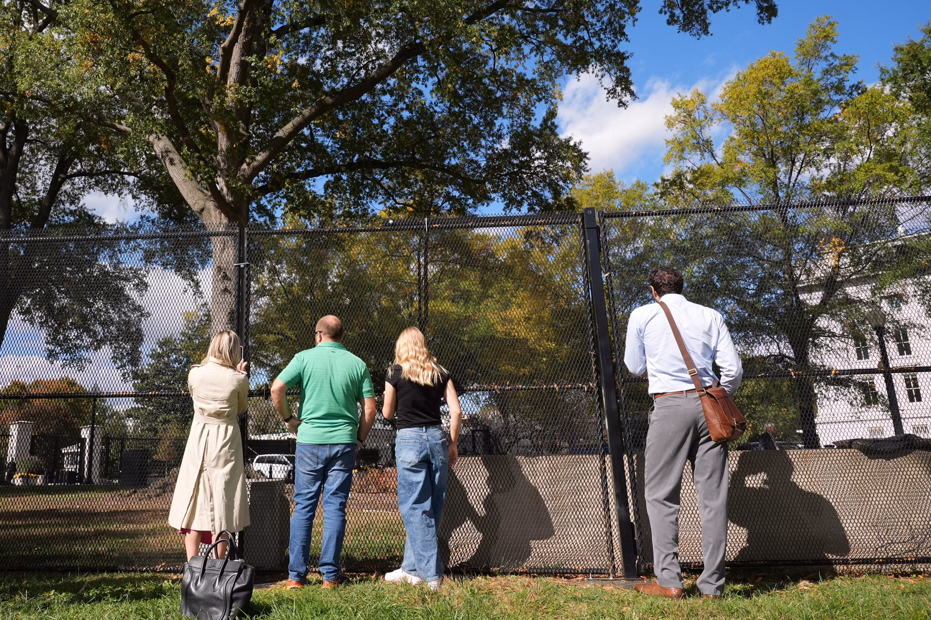 People watch from outside a security fence as demolition continues on the East Wing of the White House, Oct. 22, 2025, in Washington.Jacquelyn Martin/AP