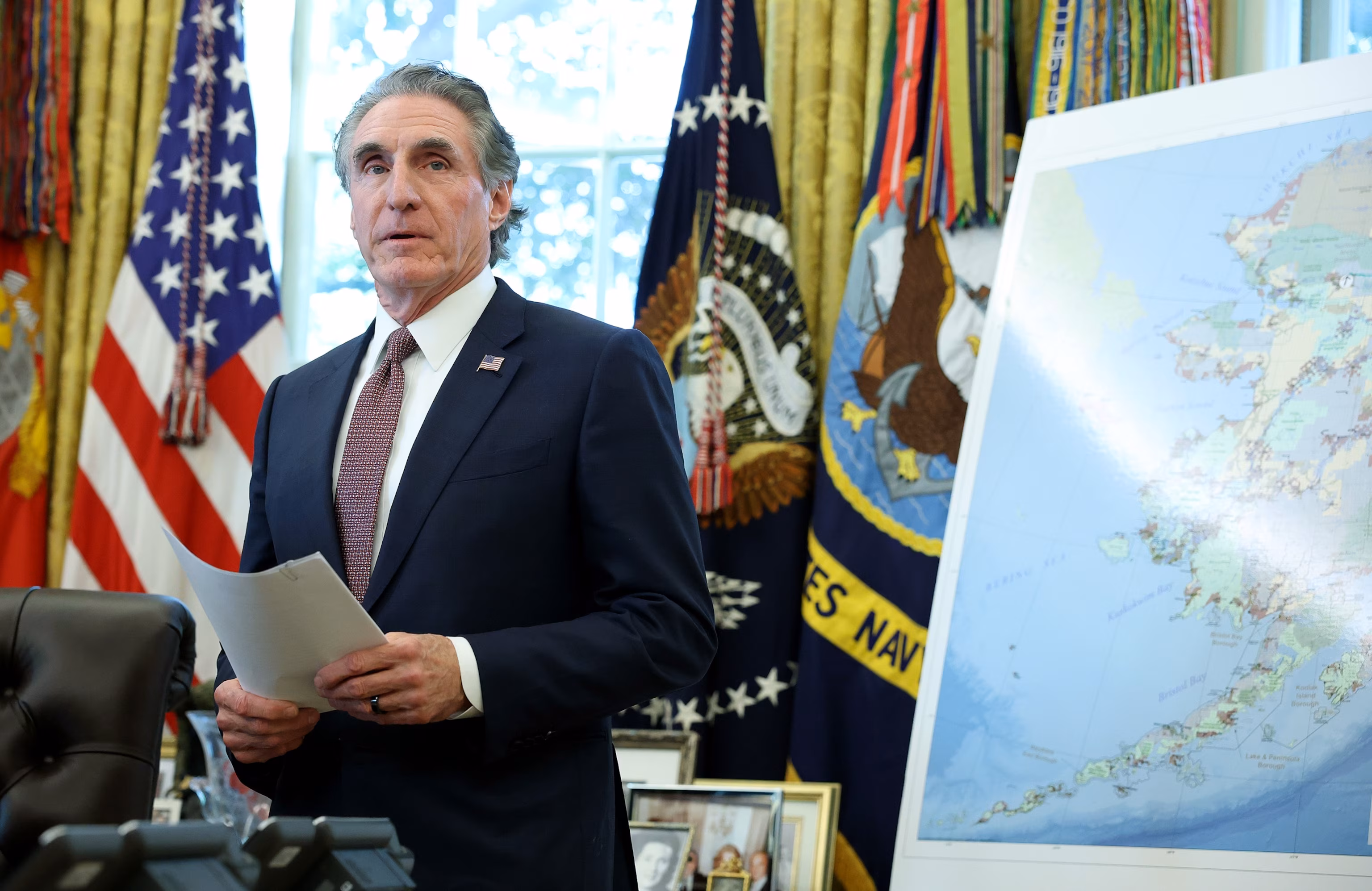 1:02Interior Secretary Doug Burgum addresses an event alongside President Donald Trump in the Oval Office at the White House on October 06, 2025, in Washington, DC.Anna Moneymaker/Getty Images