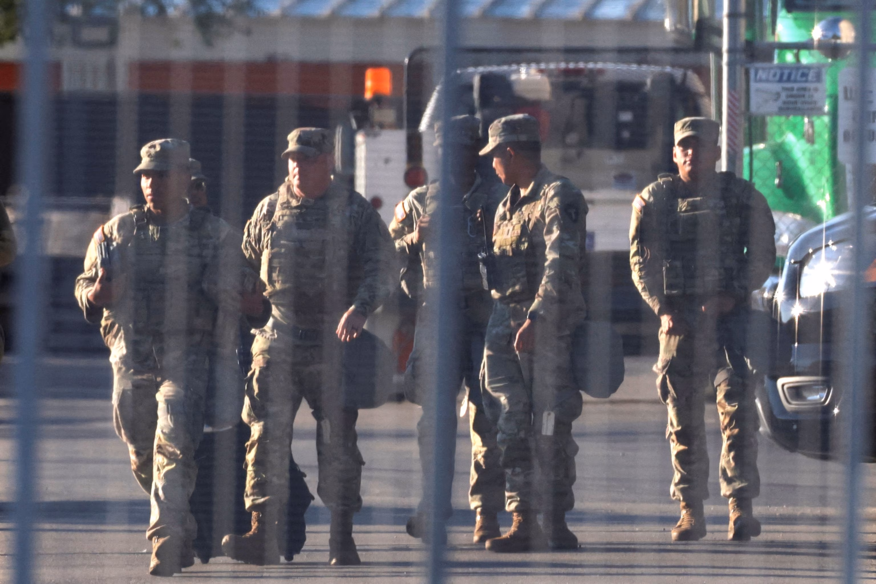 1:13Members of the National Guard walk outside the U.S. Immigration and Customs Enforcement Broadview facility in Chicago, October 9, 2025. Jeenah Moon/Reuters, FILE
