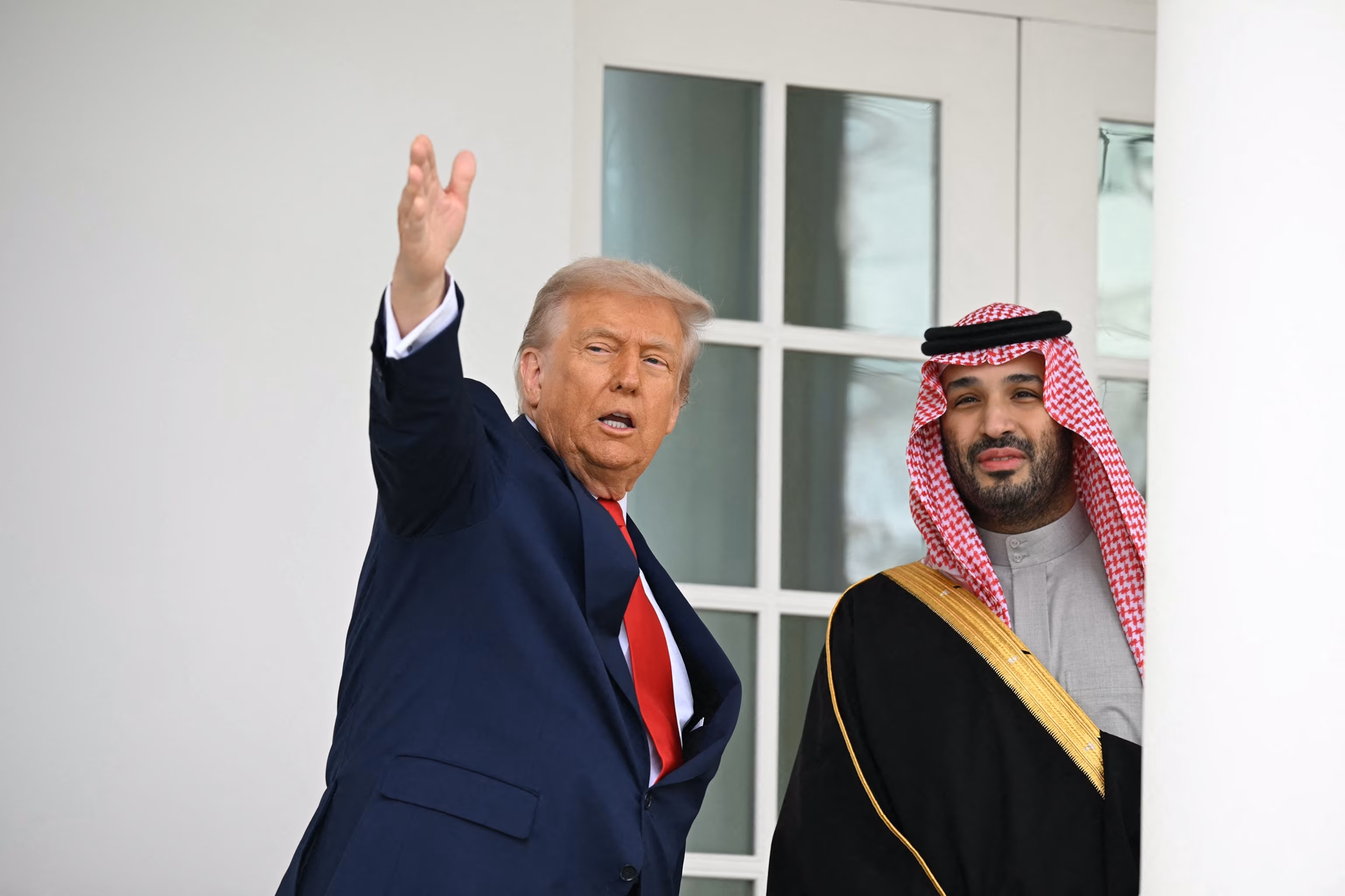 President Donald Trump and Saudi Crown Prince and Prime Minister Mohammed bin Salman confer in the Colonnade at the White House in Washington, November 18, 2025.Evelyn Hockstein/Reuters