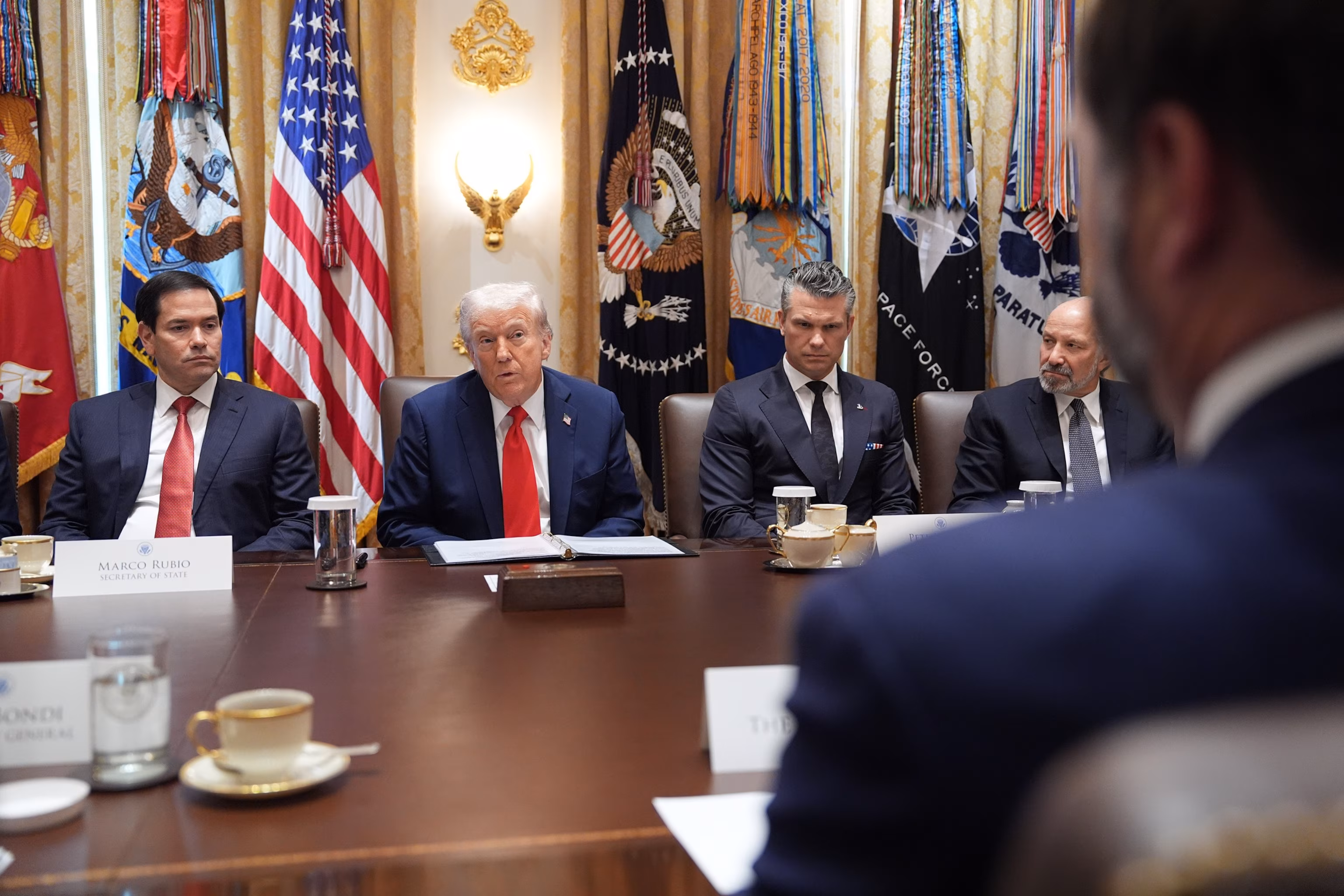 President Donald Trump speaks alongside Secretary of the Interior Doug Burgum and Secretary of State Marco Rubio during a cabinet meeting in the Cabinet Room of the White House in Washington, October 9, 2025.Jim Watson/AFP via Getty Images