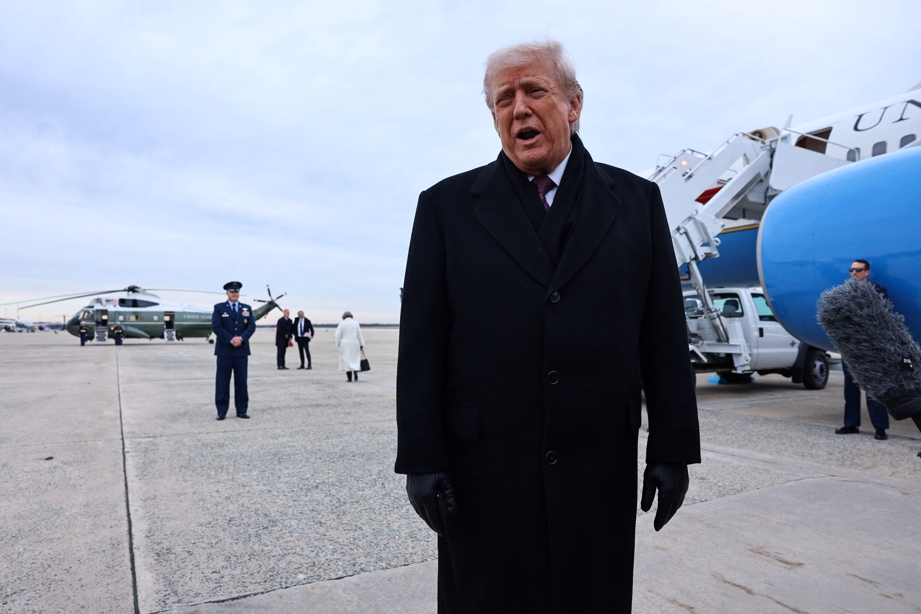 President Donald Trump speaks to reporters after stepping off Air Force One at Joint Base Andrews, December 17, 2025 upon return from Dover Air Force Base in Delaware.Jonathan Ernst/Reuters