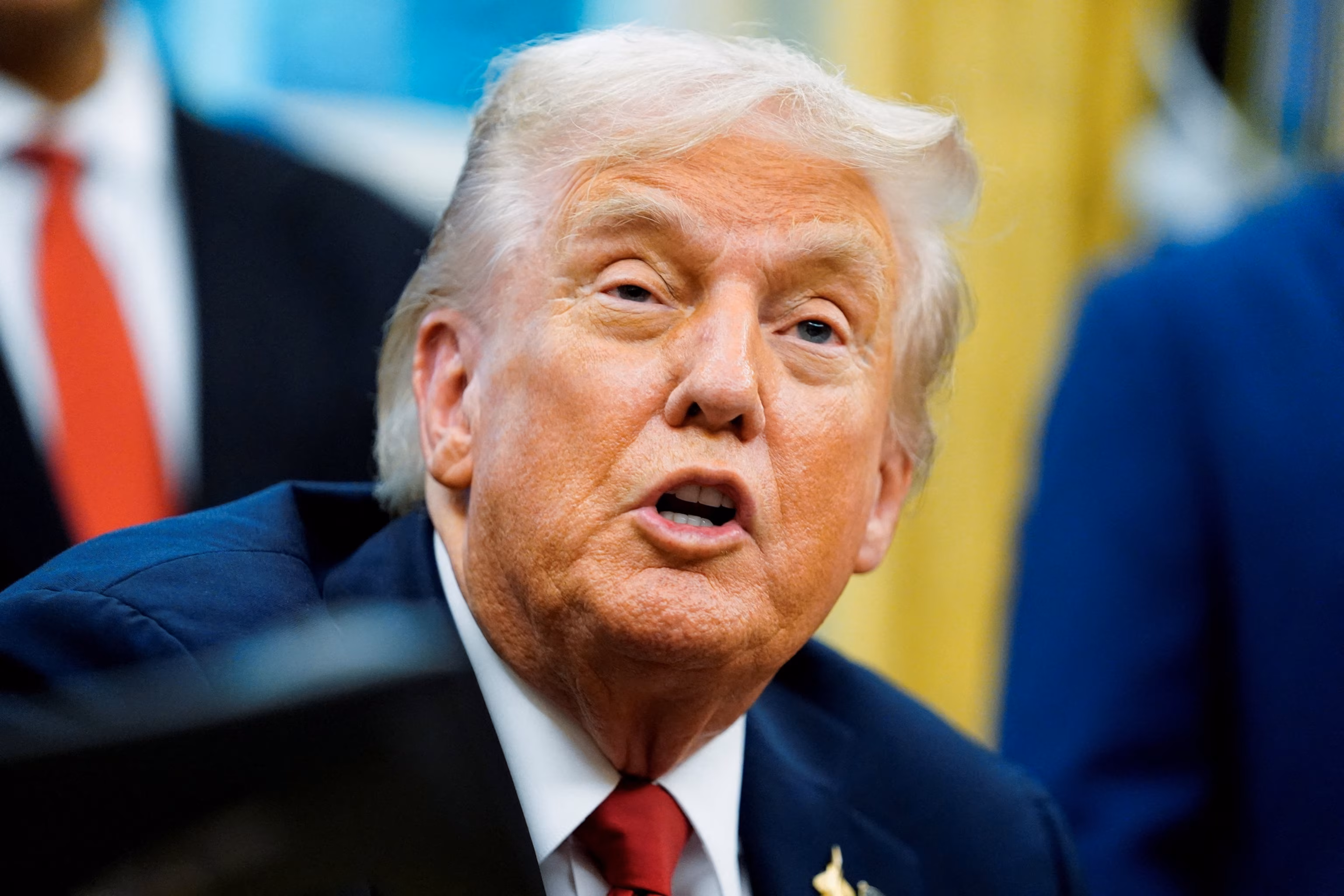 President Donald Trump answers questions while childhood cancer survivors and their families gather in the Oval Office at the White House, September 30, 2025 in Washington.Nathan Howard/Reuters