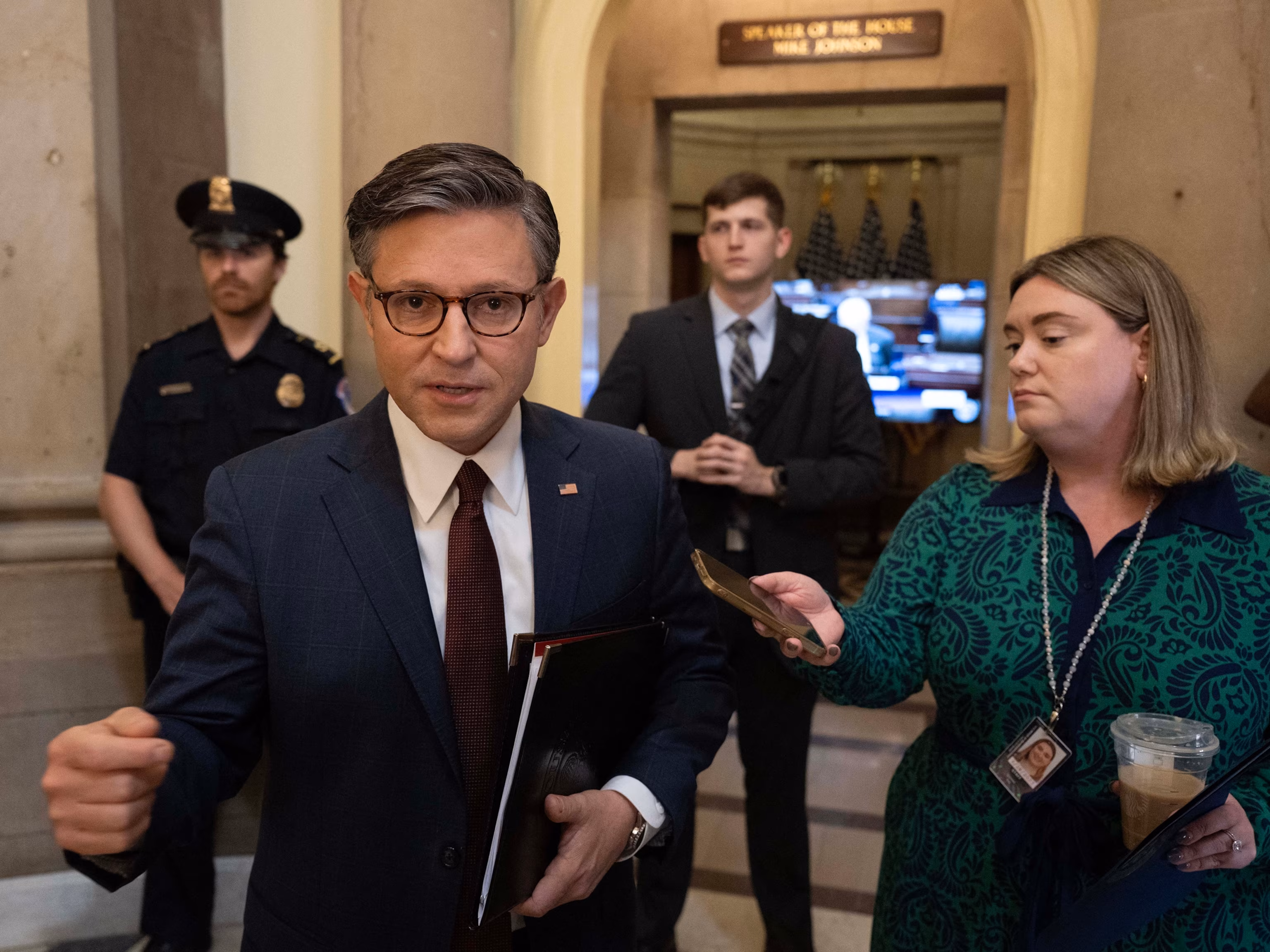 Speaker of the House Mike Johnson (speaks to reporters outside of his office on Capitol Hill in Washington, DC on October 1, 2025.Andrew Caballero-reynolds/AFP via Getty Images