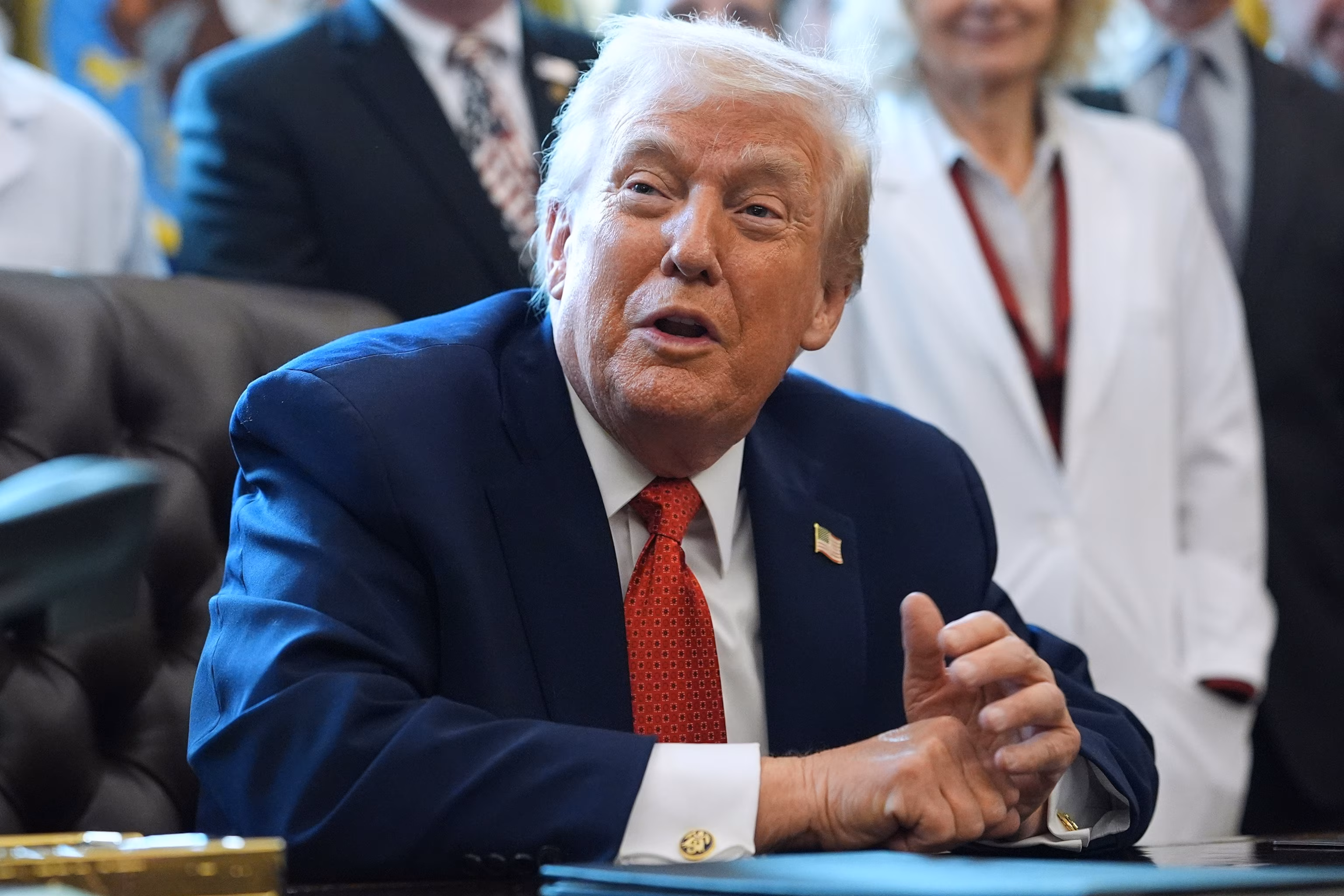 President Donald Trump speaks to reporters after signing an executive order reclassifying marijuana as a less dangerous drug in the Oval Office of the White House, Dec. 18, 2025, in Washington.Evan Vucci/AP