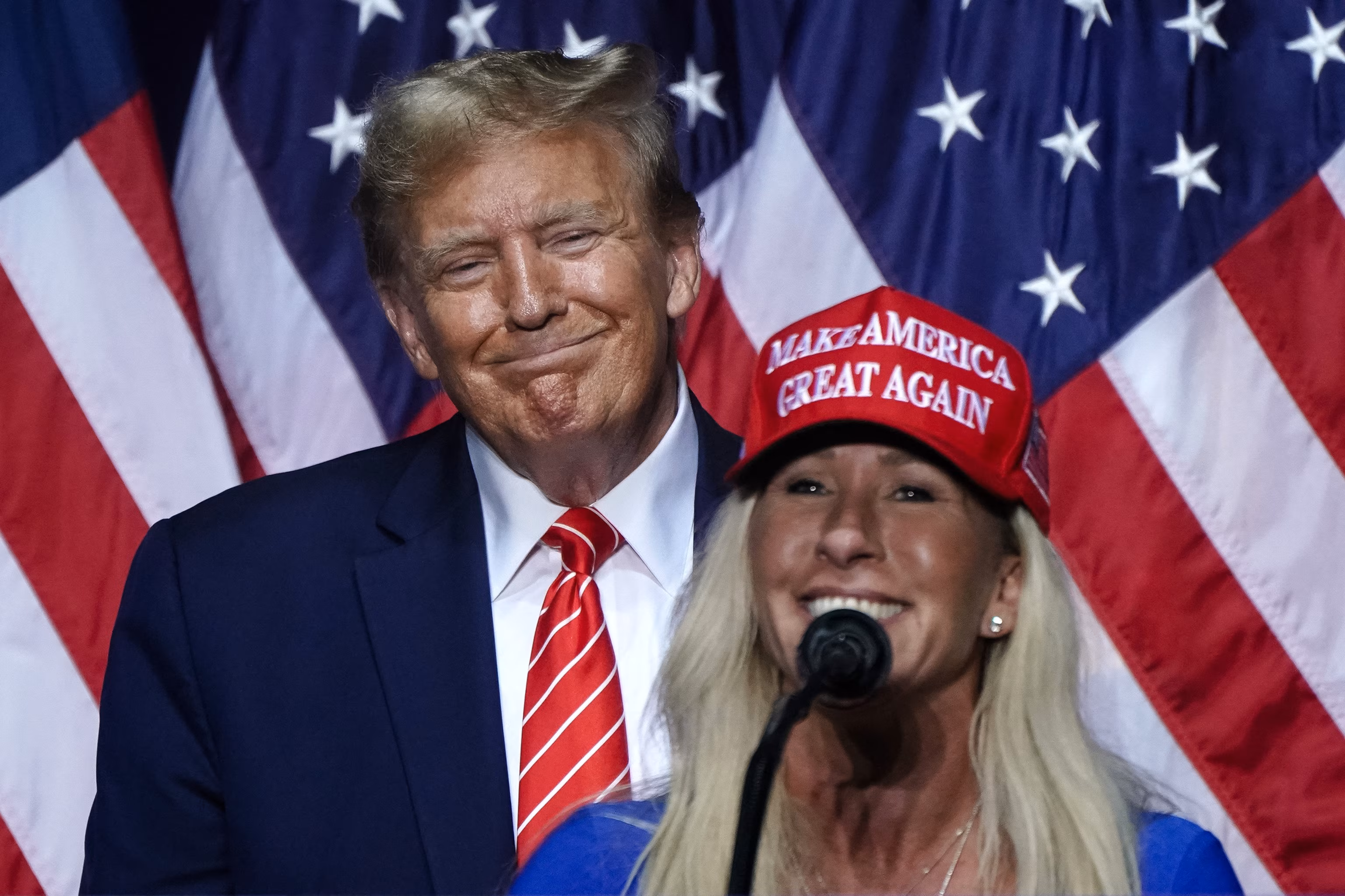 2:39Rep. Marjorie Taylor Greene, a Republican from Georgia, is seen speaking next to then-former President Donald Trump at a political rally in Rome, Georgia, on March 9, 2024.Elijah Nouvelage/AFP via Getty Images