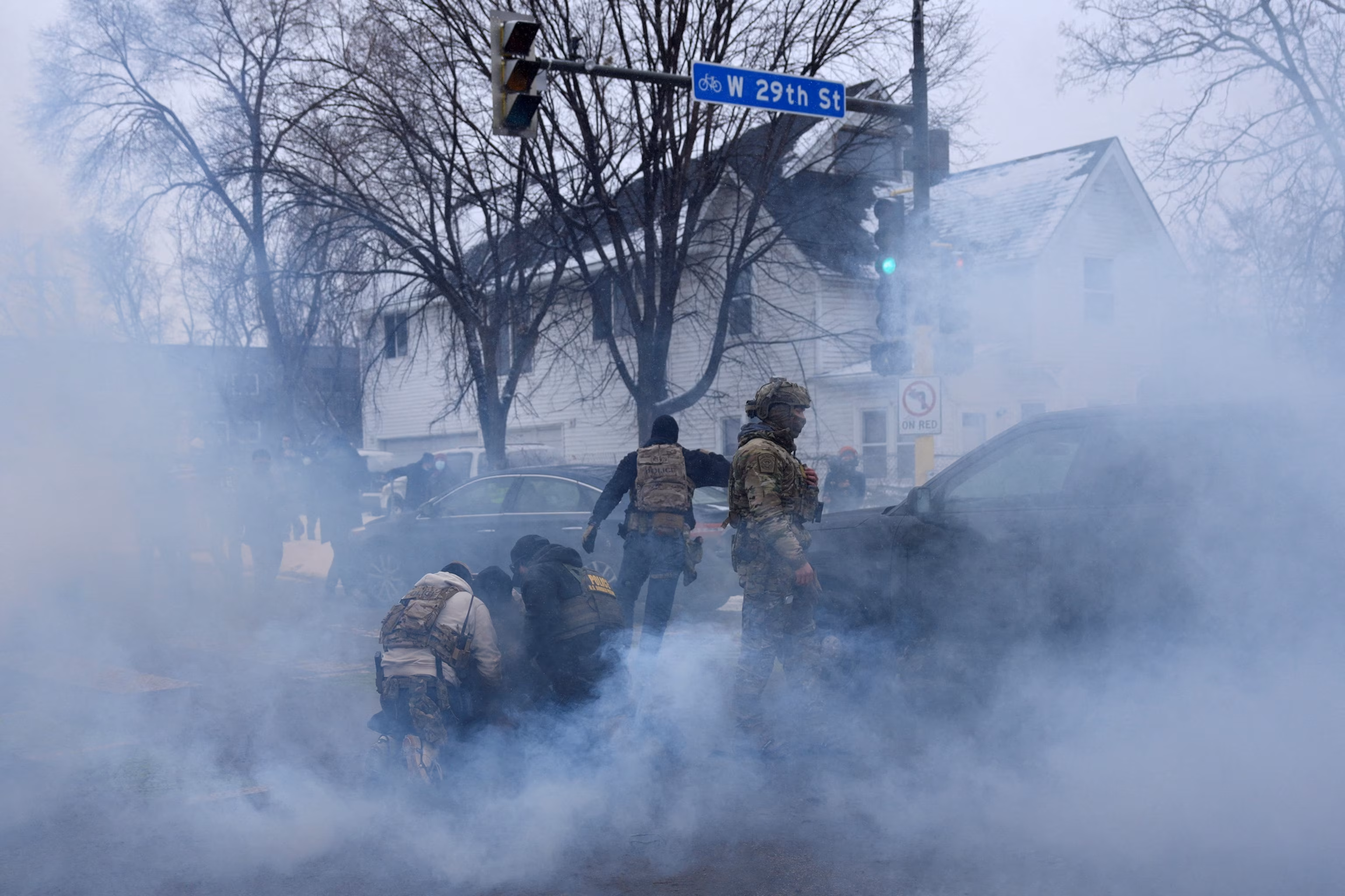 Federal agents hold a person down as they are surrounded by tear gas used to deter protesters in Minneapolis, Minnesota, January 21, 2026.Leah Millis/Reuters