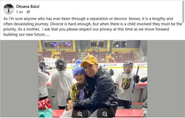 “As anyone who has gone through a breakup or divorce knows, it is a long and often devastating journey,” the famous figure skater wrote on her Facebook page. “Divorce is difficult in itself, but when a child is involved, they should be the priority. As a mother, I ask that our privacy be respected as we move forward and build our future.”