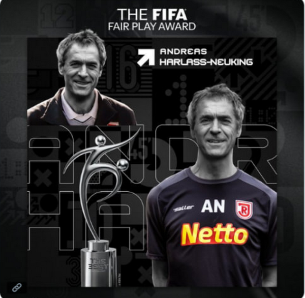 FIFA Fair Play Award — Andreas Harlass-Neuking, a doctor at the German club Jahn Regensburg, who saved the life of a home fan who suddenly fainted during an April match in the second Bundesliga at Magdeburg.