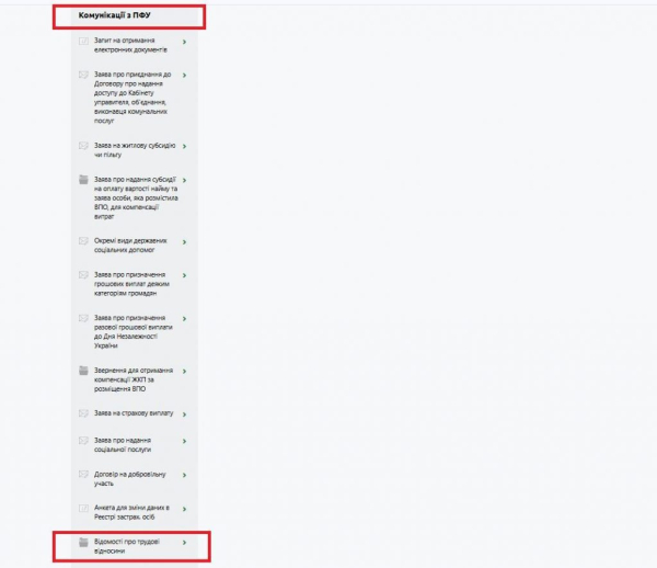 In the “Communications with PFU” section, select the “Information on labor relations” tab.