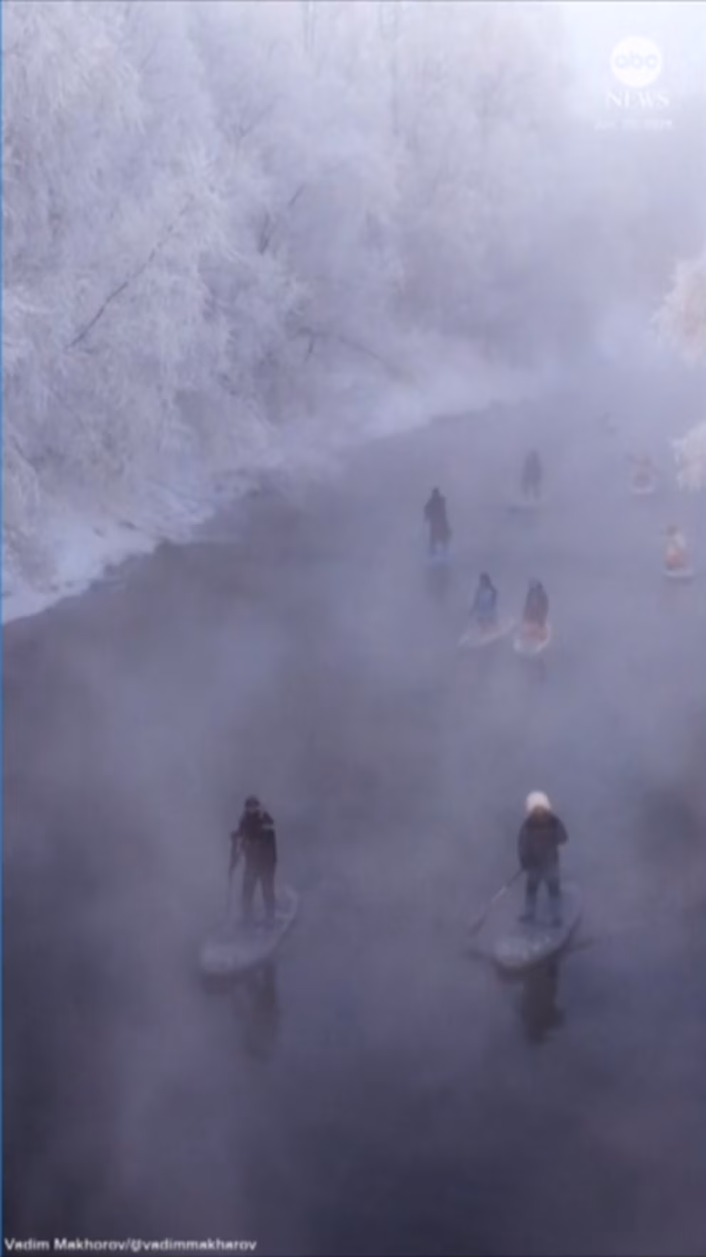 Paddleboarders venture onto river amidst frigid temperatures
