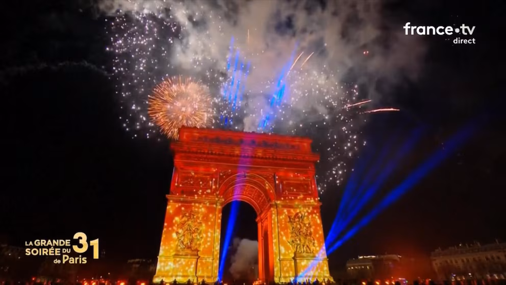 Spectacular Fireworks Light Up the Arc de Triomphe as Paris Celebrates the New Year